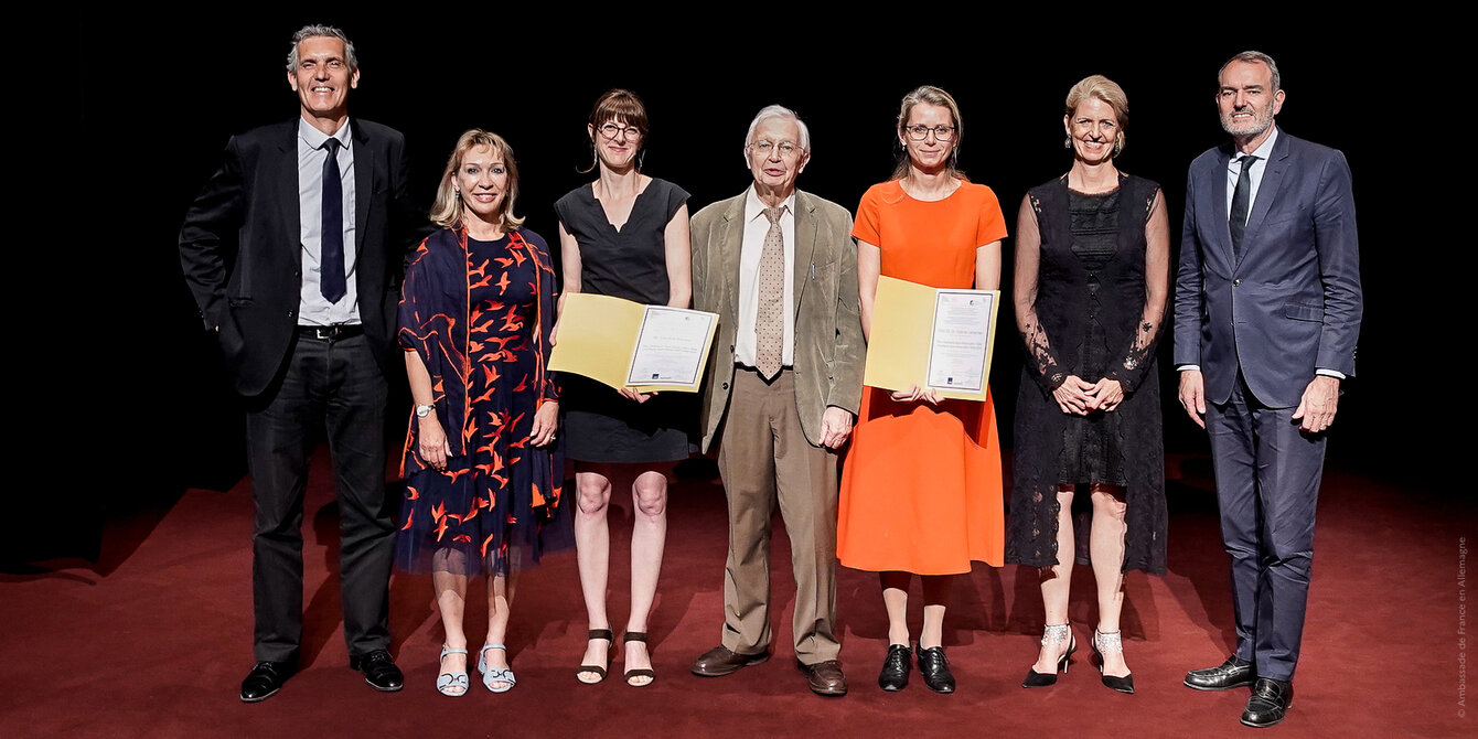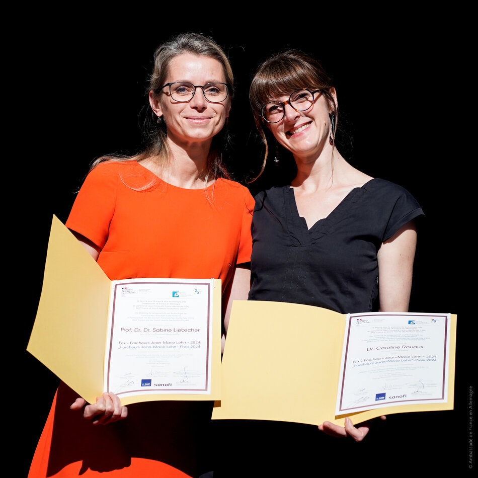 Le 24 juin dernier à Berlin s'est tenue la cérémonie de remise de prix Forcheurs 2024. La chercheure Caroline Rouaux, chef d'équipe SLA-DFT du laboratoire STEP, unité Inserm 1329/Université de Strasbourg et sa binôme allemande Sabine Liebscher de l'Institute of Clinical Neuroimmunology - Munich ont été récompensée pour leurs travaux de recherche sur la sclérose latérale amyotrophique SLA, appelée aussi maladie de Charcot.