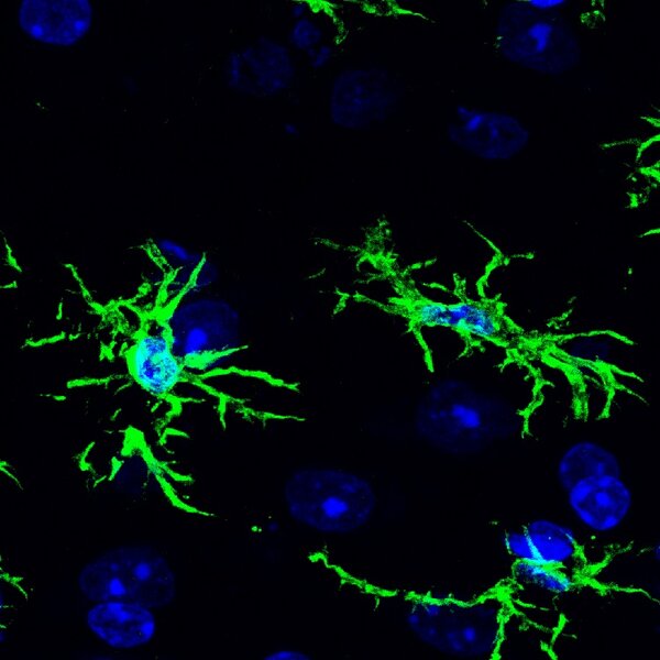 Image d'immunofluorescence dans la moëlle épinière d'une souris SLA. Crédit Sylvie Grosch